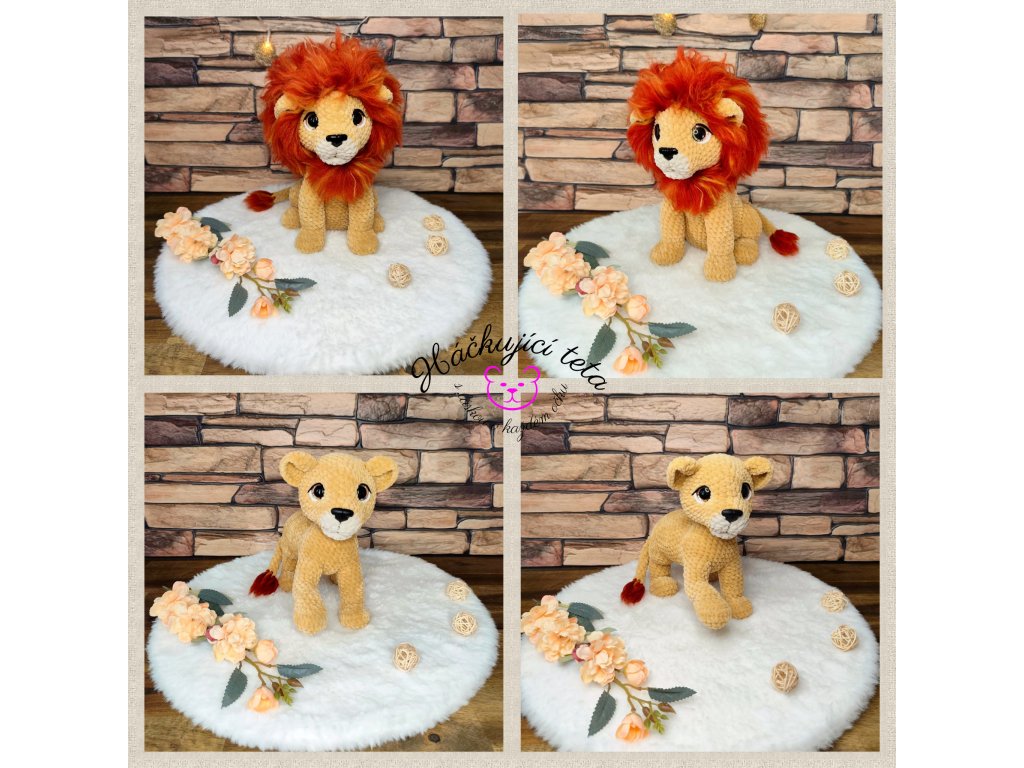 Výška uháčkovaného lva je cca 25cm a lvíčka taktéž cca 25 cm.