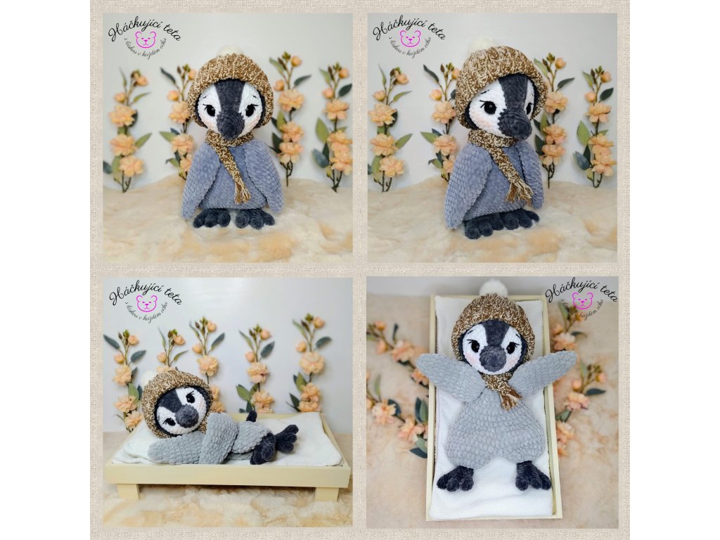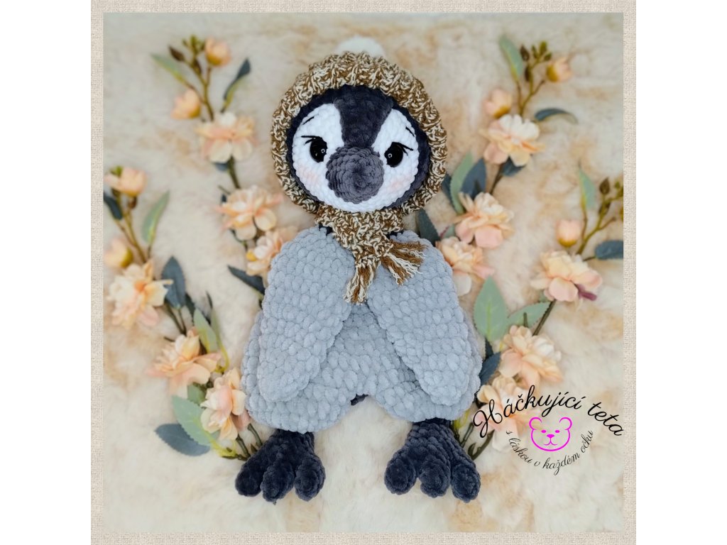 Výška uháčkovaného tučňáka i usínáčka je shodná, 30 cm.